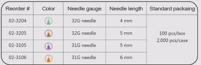 Contoured hub for Reliable Depth Control; Ultra-strong Design to resist bending or breaking; Ergonomic design helping diabetes use PNs more easily.