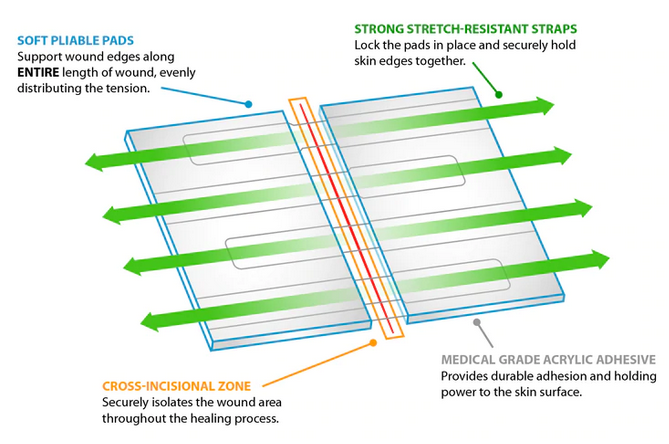 Interlaced Locking Technology aligns and holds skin edges at the same height for optimal healing and great cosmetic results.