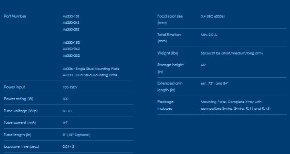 - Factory programmed dosage specifically set for each view when using ScanX® flexible phosphor plates (PSPs)