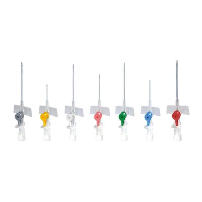 Flexible wings are designed with 6° angle; Triple facetted back cut & highly polished Japanese Needle with Ribbed Cap-Protective; Kink-resistant Catheter with color coded injection port; Clear and transparent chamber flash back.