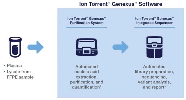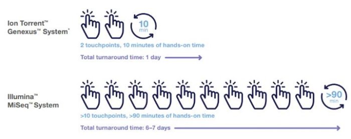 Specimen to report in a single day with a hands-off, automated workflow. The Ion Torrent Genexus System is the first turnkey next-generation sequencing (NGS) solution that automates the specimen-to-report workflow and delivers results in a single day with just two user touchpoints.* This highly flexible system lets you process samples—even just one—cost-effectively as they come in. And its simplicity and practicality make it easy for your clinical research or testing lab to bring NGS in-house, regardless of your team’s current level of NGS expertise.