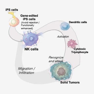 The iPSC-derived gene-edited NK cells in our research and development pipeline, are NK cells with enhanced intrinsic abilities such as improved anticancer activity using gene editing technology with iPSCs, and are expected to be effective against a broad range of cancers not limited to specific cancer antigens.