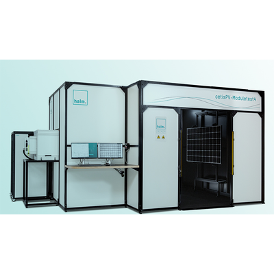 The Moduletest4 is the 4th generation system from halm. It is an IV measurement system designed for high-end R&D, laboratory and quality control requirements. The programmable pulsed solar simulator provides highly stable irradiance over long flash durations from a single light source. The system includes a sun simulator, the IV measuring system and an optimized dark chamber. By combining the qualities of a projection flasher system with a large variety of options, the system enables laboratories, test facilities and R&D departments to evaluate almost every aspect of modules.