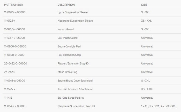 Indications: Hyperextension; Moderate to severe ACL instabilities; Prophylactic/bilateral use; MCL/LCL instabilities/ACL reconstructions