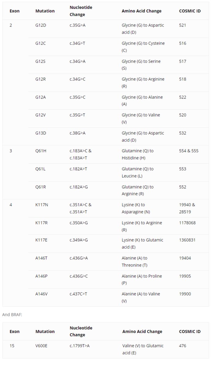 For expanded coverage, the RAS c.59/117 Mutation Detection Kit detects KRAS c.59, NRAS c.59/117 somatic mutations.