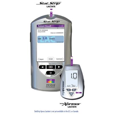 Features: Fastest turnaround – 13 seconds, 0.6 μL whole blood sample, Excellent correlation to central laboratory reference methods. The StatStrip Lactate Hospital Meter System is a handheld point-of-care testing system that brings lactate testing directly to the patient’s bedside. Lactate is currently measured on blood gas analyzers, which creates numerous problems for bedside testing. Blood gas analyzers require anaerobic arterial samples, large sample volumes (100-200 microliters), and long analysis times (up to 2.5 minutes). In addition, blood gas analyzers are complex to operate, fixed in location, and expensive to purchase and use for serial lactate testing. StatStrip Lactate provides the fastest turnaround time possible (13 seconds), on the smallest whole blood sample (0.6 microliters), and can be easily operated by medical and nursing staff.