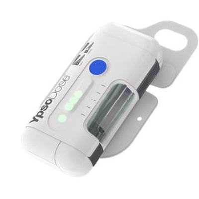 The YpsoDose single-use injector is an electromechanical pre-filled and pre-assembled patch device for 10 ml glass cartridges. Needle insertion, injection, end of injection feedback and needle safety steps are all performed automatically. The needle remains hidden at all times and made safe after injection and device removal.