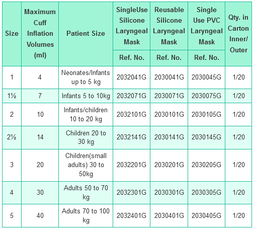 - Allows the option of being used as a conduit in fibreoptic laryngoscopy.