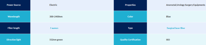 Potent laser fiber system specifications range from 200 to 1000um for use with medical laser devices adapted to endoscopic precise output energy for point-to-point operation, depending on wide application, flexibility and desired setup.