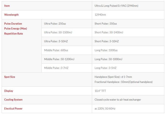ERICA : Ultra & Long Pulsed Er:YAG (2940nm). The Erica laser provides powerful results for treatment of epidermal skin lesions, various scars, fine lines and wrinkles. The Erica comes with four modes: Ultra, Short, Middle, Long pulsed mode for ablation and the long pulsed mode for remodeling.