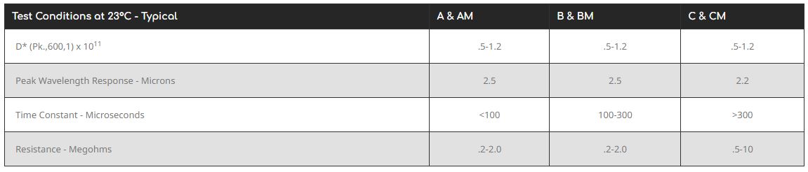 N.E.P. - Model PbS RT - Series AM-BM-CM -Lead Sulfide Plate Cells Series