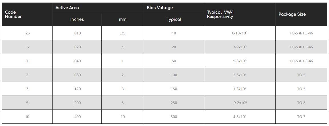 Hermetically Sealed Packages. Room Temperature Operation. Custom Wavelength Response. Custom Test Procedure. Hybrid Amplifiers. 2 Year Warranty. Filters Available.