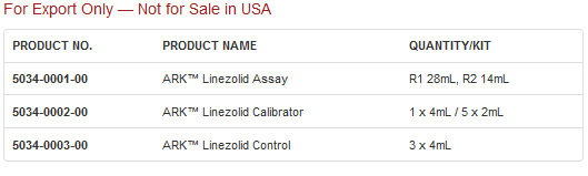 The ARK Linezolid Assay is intended for the quantitative determination of linezolid in human serum on automated clinical chemistry analyzers. The measurements obtained are used in monitoring levels of linezolid to help ensure appropriate therapy.