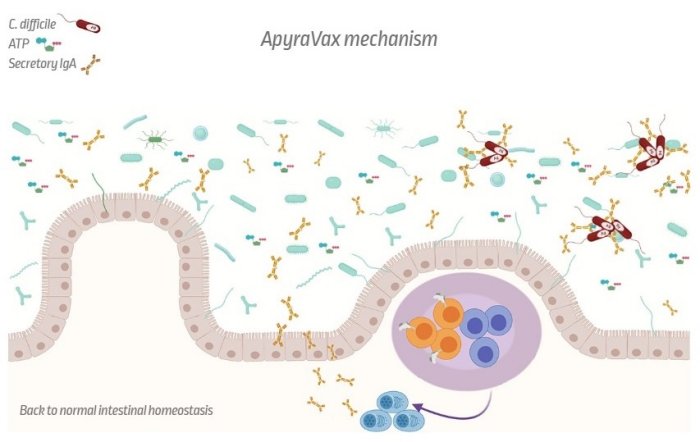 The ApyraVax technology exploits the live attenuated typhoid vaccine as vector to deliver orally an enzyme that breaks down ATP (apyrase) together with desired antigen/s. The innovative feature is the unique ability to generate high-affinity secretory IgA that are protective towards the target infectious agent.