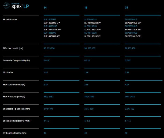 Reflow - Model Spex LP -Lowest Profile Reinforced Support Catheter