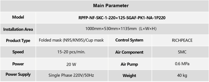 It is widely used in different kinds of mask breathing valve punching. Pedal type control, easy to operate. Richpeace independently developed control system and SMC brand cylinder combination to ensure stable operation of the equipment.