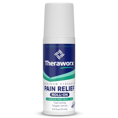 Theraworx® Maximum Strength Pain Relief Roll-On with Lidocaine HCl 4%. Size: 2.5 fl oz. Theraworx Maximum Strength Pain Relief Roll-on helps relieve pain. Our fast-acting formula is made with lidocaine HCl 4% and absorbs quickly with a no-mess, no-touch application. Theraworx Maximum Strength Pain Relief is made with ginger and helps you get back to doing what you love with Theraworx Maximum Strength Pain Relief. Size: 2.5 fl oz.