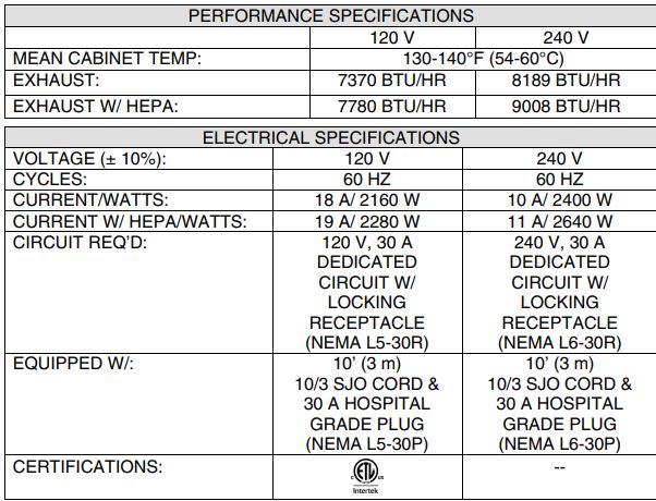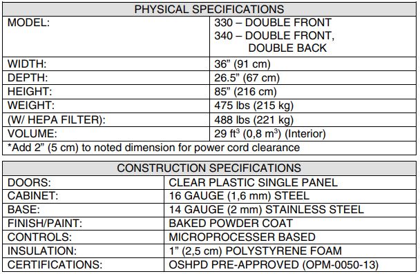 - Programmable user interface with temperature and cycle time selection, and automatic filter change alert