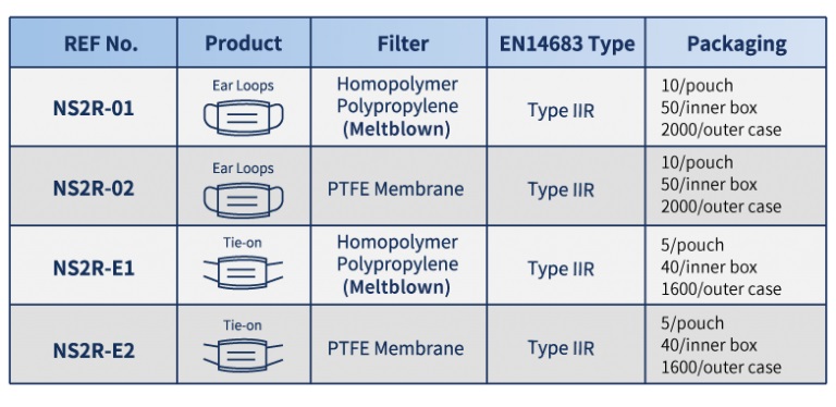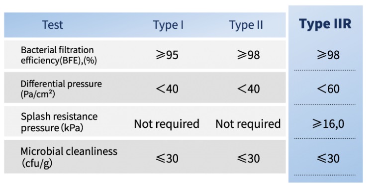 The table below indicates the performance requirements de?ned by EN 14683-2019. Gemtier’s above products meet European Standard EN 14683, Type IIR.