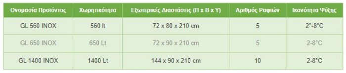 Construction from stainless steel AISI 304 18/8-10. Anti-corrosive protection on the evaporators. Injected polyurethane foam insulation, 60mm in thickness (CFC & HCFC free,42±2 Kg/m3 density). Triple glazed Glass Door with self-closing mechanism at an angle of 45o or less and lock. Hygienically designed rounded corners. Clip-on shelving system. Automatic evaporation of the condensate water. Clip-on magnetic gaskets. LED lighting system. Refrigeration system: Ventilated. Stainless feet adjustable in height.