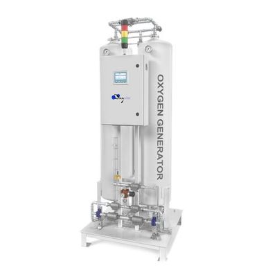 PSA Oxygen Generator consists of two columns filled with a zeolite molecular sieve. Pre-treated compressed air enters the active column and flows up through the zeolite. Nitrogen and other unwanted gases are adsorbed while the oxygen passes through. The active column then becomes fully pressurized. When this pressure is released, the column becomes inactive and completely regenerates during the depressurization. In order to secure a steady flow of oxygen each generator is built from two columns; one is active while the other is inactive. At the end of each columns cycle, they switch roles.