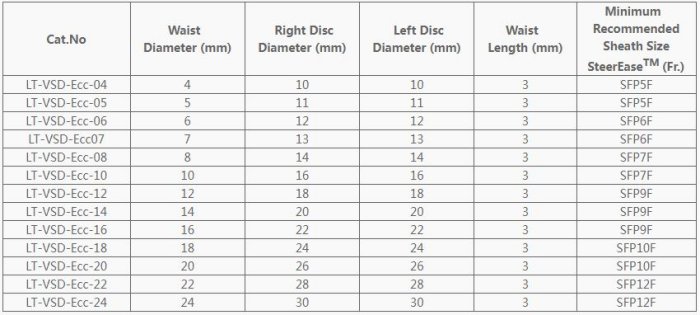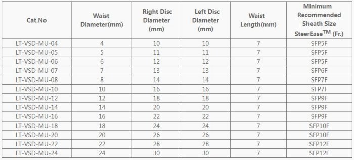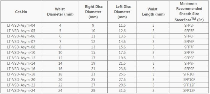 - The ASD waist diameter available ranging from 6 to 42 mm, and the PDA occluder ranging from 0406 to 2224.