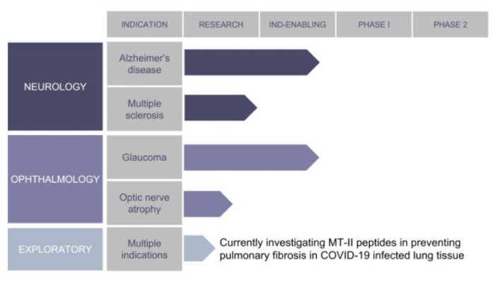 The Neuroscientific Biopharmaceuticals product portfolio includes several therapeutic peptides that are modeled on the domains of a naturally occurring protein called Metallothionein-II (MT-II).