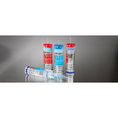 Vitrex Micro Haematocrit Tubes are precision-engineered to meet the ISO 12772 standard for medical grade hematocrit assessments. These tubes are meticulously crafted with fire-polished ends to protect centrifuge seals during processing. Vitrex offers a comprehensive color-coding system to denote the tube's impregnation: blue for plain, red for sodium heparin, green for ammonium heparin, and orange for lithium heparin. Each heparinised tube is potent with 4-7 IU heparin, fulfilling the required criteria for effective anticoagulation. The innovative design extends to a plastic variant maintaining functionality akin to the glass counterparts. Vitrex tubes are distributed in two main packaging options: hygienic dispenser vials containing 100 tubes and cost-efficient cardboard boxes of 1000 tubes. Moreover, customized specifications including unique markings or dimensions can be accommodated to address particular clinical needs. These attributes make Vitrex Micro Haematocrit Tubes a proficient choice in laboratory settings seeking reliability and adaptability in hematological analyses.Vitrex Micro Haematocrit Tubes are quality products, that conform to international standard ISO 12772. The tubes are firepolished at the colour-coded end to reduce wear on the centrifuge seals. We recommend the colour-coded end to be sealed with Vitrex Wax plate. The colour-coding on the tubes and packaging indicates the impregnation of the tube: plain (blue colour), sodium heparin (red colour), ammonium heparin (green colour) and lithium heparin (orange colour). Each heparinised tube contains at least 4-7 IU heparin as prescribed by the standard. Vitrex Micro Haematocrit tubes are also available in plastic with plain, sodium or ammonium heparin in a volume of ~50 μl. The plastic tube provides the same effect as the glass tube.