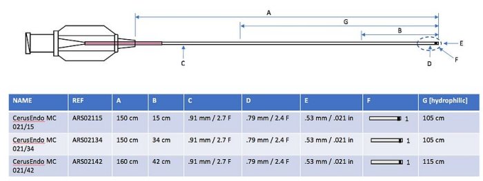 In addition, it has a standard luer lock hub at the proximal end, and a radiopaque marker at the steam-shapeable distal tip. Paramount to the design of the CerusEndo MC 021 was the drive to create a microcatheter providing optimum target vessel access, and best in class stability during delivery of intraluminal therapeutic devices such as stents, flow diverters, and intrasaccular embolization devices.