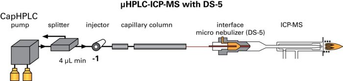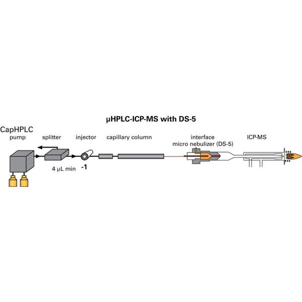 The figure below shows the typical arrangement of the DS-5 for online chromatography with ICP-MS.