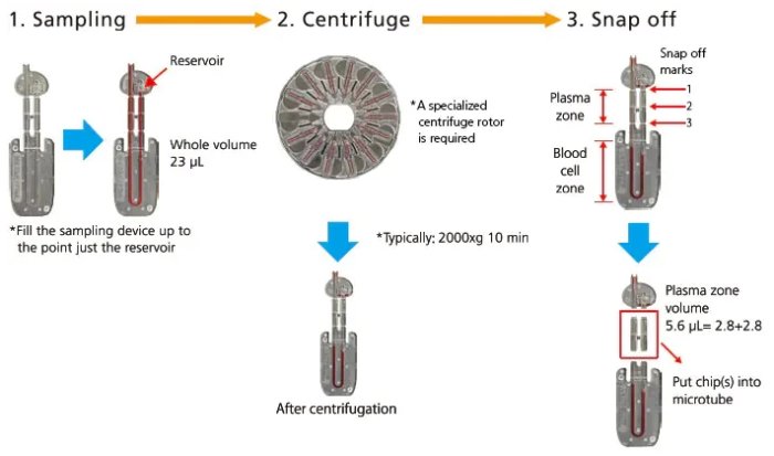 Skilled techniques are required to reduce human error in the collection of small volume of samples,especially plasma. MSW2 enables to collect exact amount 5.6 µL of plasma or serum sample regardless of the skill level of operator.