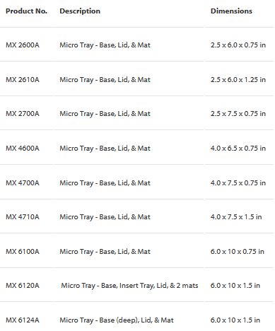 Maxtown instrument trays may be customized to adapt to a wide variety of individual configurations. Trays are manufactured with state-of-the-art durable medical grade plastics engineered with a "pebble-like" interior surface to ensure proper penetration of steam and other sterilizing agents under the mat.