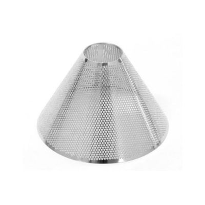 ID : 10148-020. Type : Sieve cone. Hole shape : round hole spape 1,6 mm. Open angle30°. Outer diameter : 136 mm. Adapter flange : without. Customer specific : perforation, signature. Applications: Food & Beverage, Pharma, Cosmetics. Fine Chemistry.