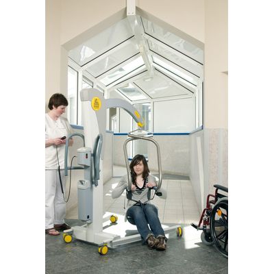 The Mobile Hoist 2600, also known as 'Victor,' from Handi-Move is engineered for intensive use in professional settings, such as care institutions, hospitals, and rest homes. Designed as a mobile passive hoist, it features an innovative drive system that enables it to operate quickly, even under maximum load conditions, making it the fastest in its class. The device is equipped with large wheels and rubber bumpers ensuring durability and easy maintenance, thanks to its aluminium and stainless-steel construction. It offers smooth lifting capabilities for weights up to 225 kg and provides ergonomic handling for ease of use in confined spaces. An electrically adjustable chassis enhances its adaptability around wheelchairs or seats, and it can be used with Handi-Move's Body Support® systems and slings. Featuring large battery autonomy, the Victor model can perform up to 180 transfers on a single charge, and is equipped with safety features like a mechanical emergency descent and interchangeable systems for varied user needs.Most popular related searches