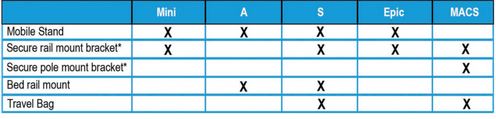 The Mobile Stand is a 3 foot, 9-inch (1.2 m) tall, MRI compatible stand P/N 21001 is designed to hold the pNeuton ventilators, model S or A and P/N 21005 is designed specifically for the pNeuton mini. Both models’ five wheeled stand uses large, 3-inch (7.6 cm) wheels to aid in stability and ease of movement. Both stands use a mounting plate which allows the user to slide the ventilator on and off the stand for transport.