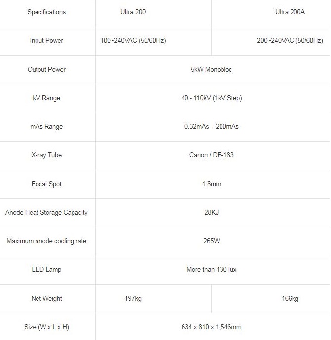 5kW Mobile X-ray unit-Compact, Smooth and Powerful (110kV, 200mAs) ULTRA 200 / 200A will be an answer for your long-term question on portable X-ray. Get an ideal X-ray solution for your ER purposes as well as a secondary mobile choice.