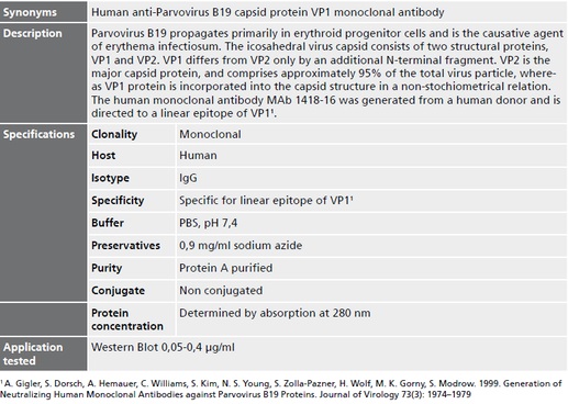 94409, Monoclonal Anti-Parvovirus B19 VP1 Antibody (MAb 1418-16), 100µg