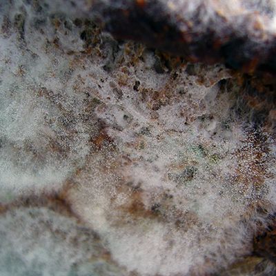 Moulds (e. g. Alternaria alternata) reproduce by producing large numbers of microscopically small spores, which are adapted for wind dispersal and may remain airborne for long periods. Spores can begin growing on suitable materials like food, wall paper or wood under favourable conditions, forming large colonies or mycelia. Moulds require moisture for growth and can be found on moist walls, especially bathroom walls.