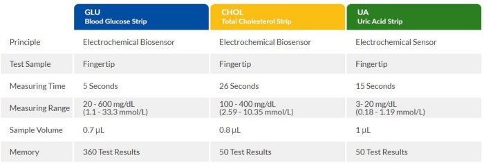 - Glucose, Cholesterol, Uric Acid