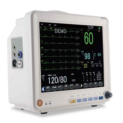 12.1 inch color display with 800*600 resolution. Three Working Modes: Monitoring, Surgery and Diagnosis. Simple and friendly operating display interface. Multi-display modes suitable for different applications: Standard Interface, Large font, ECG Standard Full Display, OXY , Trend Table, BP Trend. Built-in rechargeable Lithium battery up to 3 hours of continuous work. VGA output for external display.