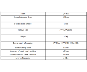 QV-600 is a portable vein finding device. It can project the blood vessels image on skin surface accurately and timely. The ergonomic design makes it very comfortable to hold. And the optional desktop stand and mobile trolley are available for multiple application situations. Help doctors and nurses easily find veins of various patients, such as obesity, hairy or dark skin people, etc. It highly increases the success rate of puncture thus reduces the cost and pain. This device also can be used to examine patients with varicose veins, and avoid closed or bifurcated veins.Main Features