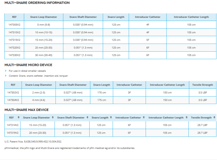 The Multi-Snare Device and the Multi-Snare Micro Device and their components are intended for: