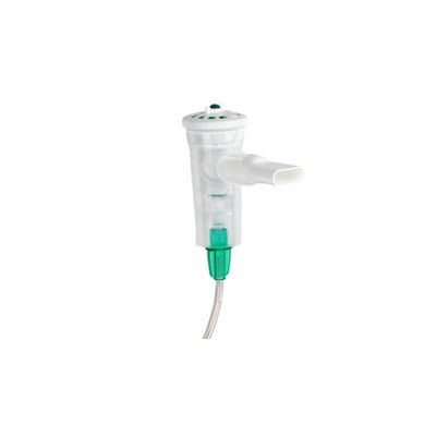 - Inhale and exhale through the mouthpiece to verify the movement of the green feedback button on the top of the nebulizer.