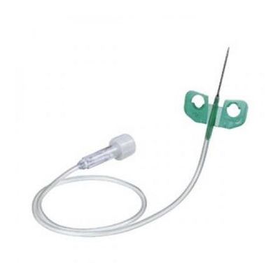 Venipuncture sets for short-term injection, infusion, transfusion. Winged IV needle with 30 cm tube and closing cone
