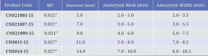 - Simplified sizing approach compared to other intra-saccular devices (i.e. neck and widest diameter only).