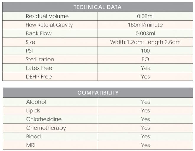 Needle free technology Plus Neutral fluid displacement designed helps reduce reflux-related occlusions, low measured displacement and blood reflux.