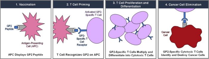 Preclinical studies have shown that T cells sensitized against the GP2 peptide demonstrate significant recognition of HER2/neu-expressing tumors. Both ovarian and breast cancer-specific CTLs recognize GP2, which is widely expressed in HER2/neu-expressing tumors and is capable of inducing tumor-specific CTL populations in vitro.