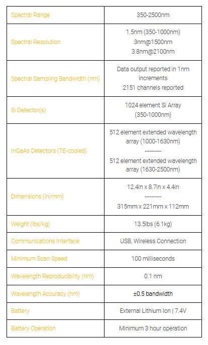 The oreXpert NIR field spectrometer is specifically designed to provide the highest resolution available for the harsh requirements of field use. Its high resolution allows the distinction of features that help with unmixing and identification of trace minerals. It features ultra high resolution and very stable performance with three high-density thermoelectrically cooled photodiode arrays.