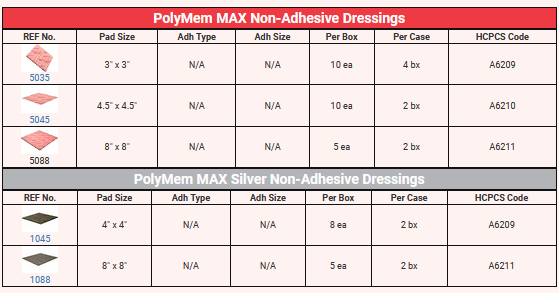 PolyMem - Model Max -Non-Adhesive Dressings