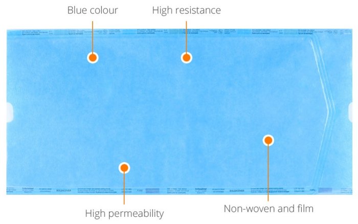 Mixed reinforced pouch: Bolsaplast offers pouches with one side made of non-woven and the other of blue-tinted plastic film especially for packaging and sterilising large or heavy products that require great tear resistance and a high level of permeability.